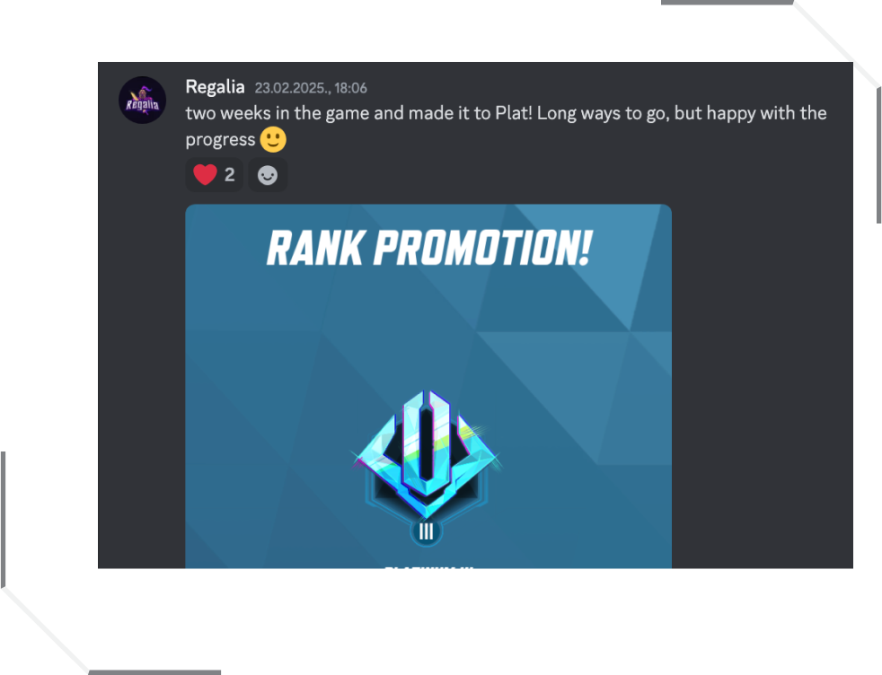 Join our Discord server and connect with a supportive network of teammates and coaches that will help you grow.