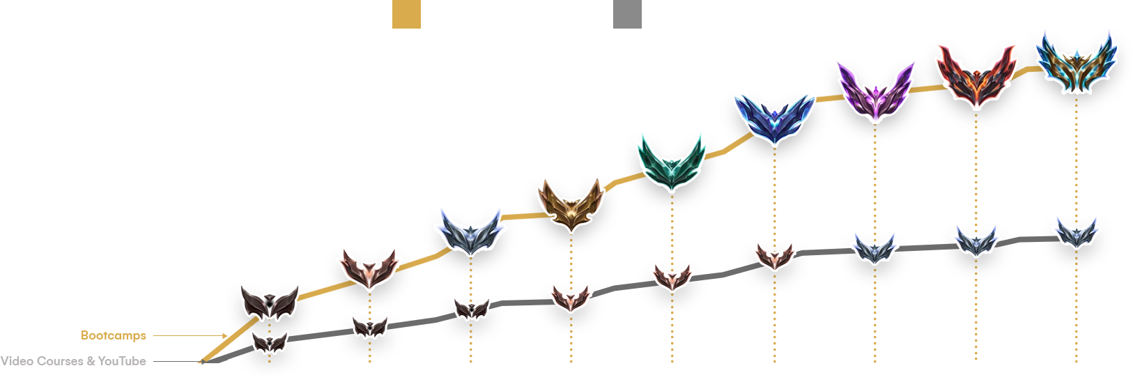 Learning alone, with YouTube & video courses sucks! But with the bootcamp community, accountability, and active learning, you'll be able to improve up to 2x more in the same amount of time!