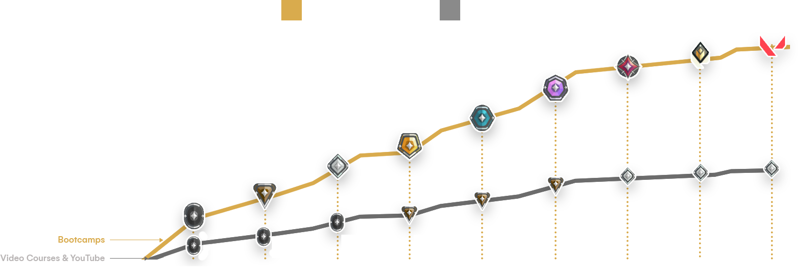 YouTube, video courses and isolated learning dont work! But with the bootcamp community, accountability, and active learning lead by pro coaches you'll be able to improve up to 2x more in the same amount of time!